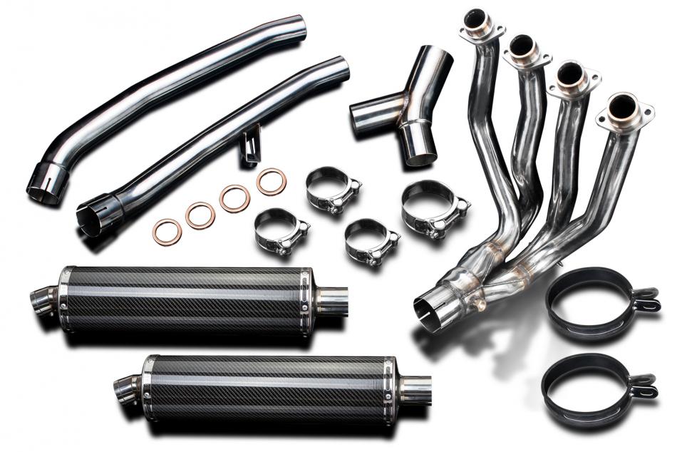 Full 4 into 2 Exhaust in 304 Stainless Steel with a Slip-on 18-inch Oval Carbon Fiber Mufflers for ZX-14R ZX14