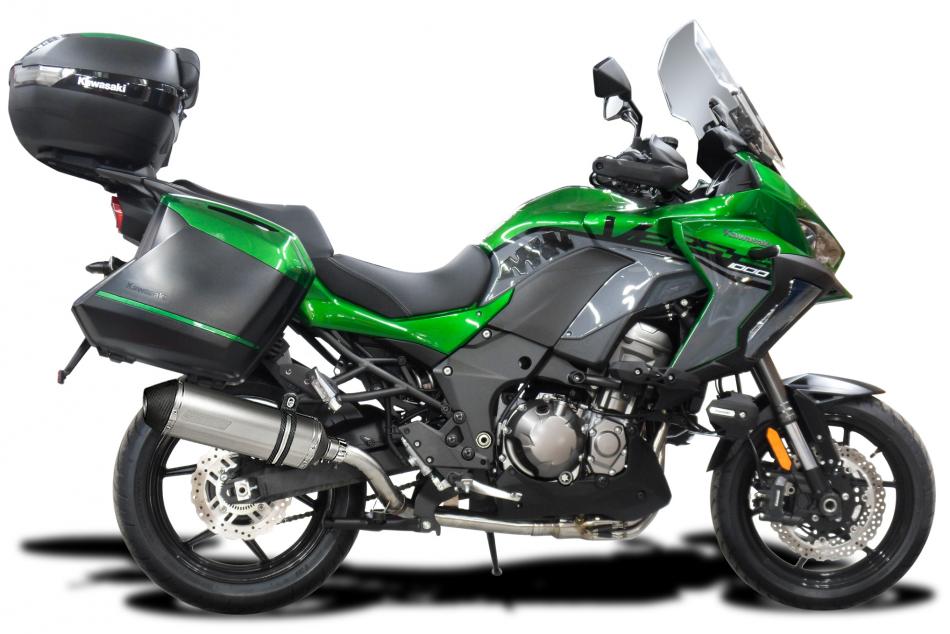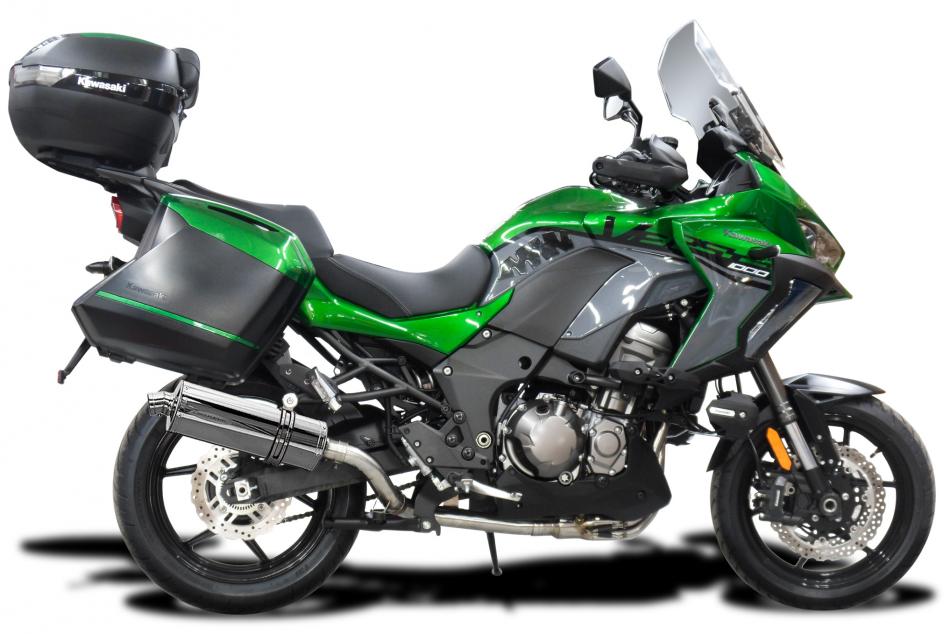 The Versys 1000 is the Grand Touring Offering from Kawasaki. 120PS and full Luggage available. This mile muncher will munch more miles with a Delkevic Exhaust taking it to the next level