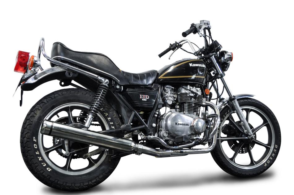 The Kawasaki KZ440B is a street machine boasting six speed gearbox, front disc brake, twin exhaust system. A Delkevic exhaust will reduce weight and improve performance.