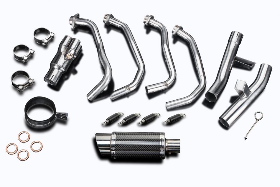 Full 4 into 1 De-Cat Exhaust in 304 Stainless Steel with a Slip on 18-inch Oval Carbon Fiber Muffler for Ninja 1000 Z1000SX