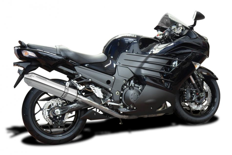 Slip-On Exhaust with 13.5-inch XOval Brushed 304 Stainless Steel Muffler for Concours 14 GTR1400
