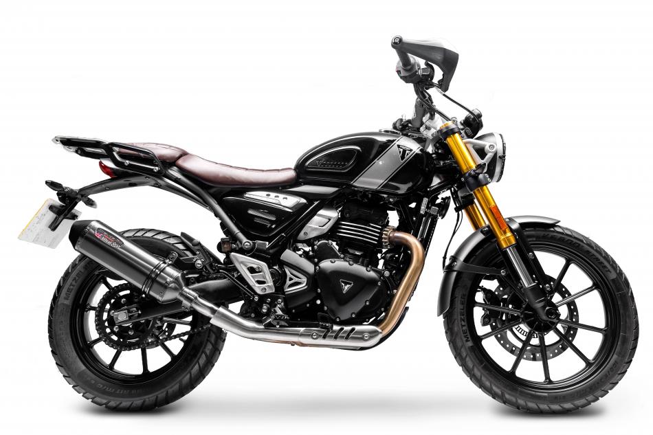 Triumph Scrambler 400X and Scrambler 400XC with Delkevic exhaust gain sharper throttle response, reduced weight, and a deeper tone. Precision stainless construction improves flow, enhances midrange torque, and upgrades style for a more engaging, enjoyable ride on any road.